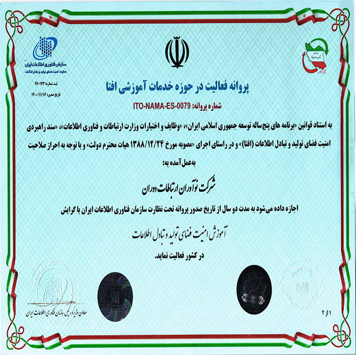 پروانه فعالیت در حوزه خدمات آموزشی افتا