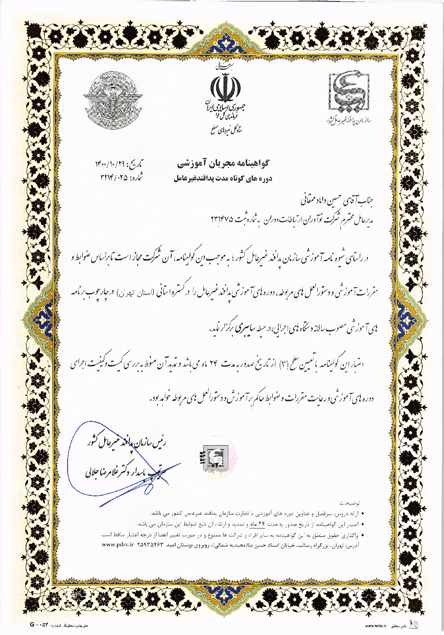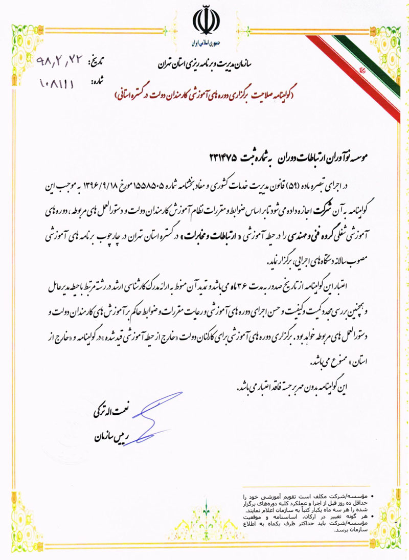 گواهی صلاحیت برگزاری دورههای کارمندان دولت