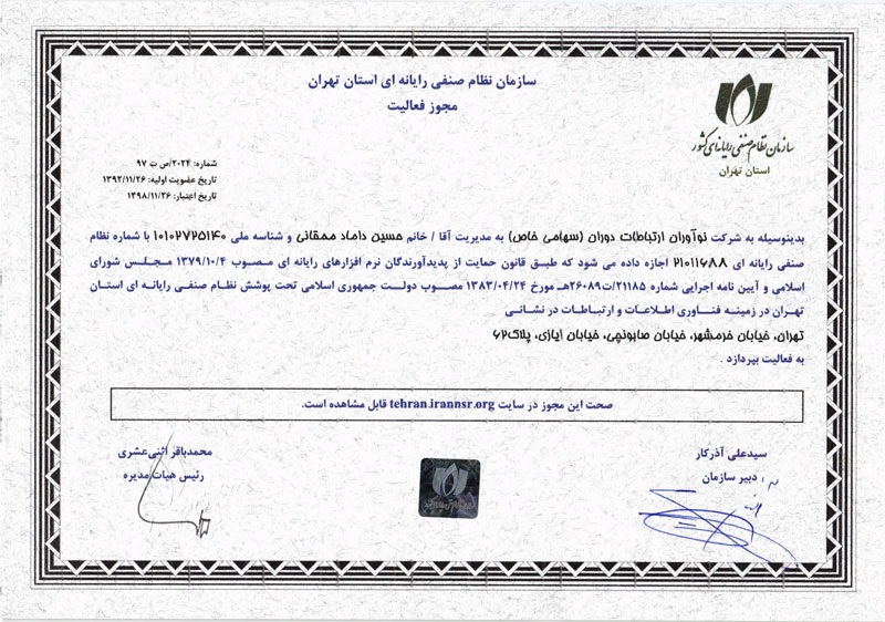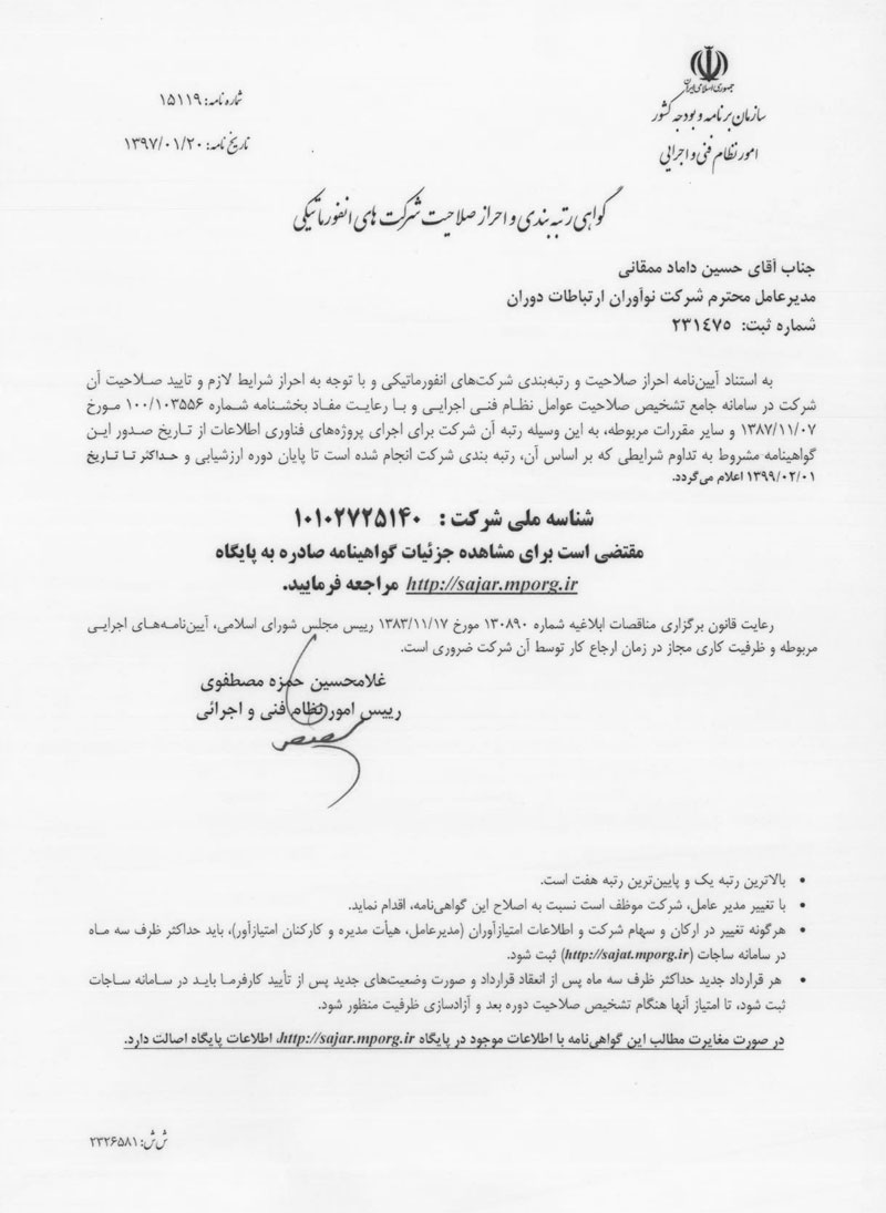 گواهینامه احراز صلاحیت شرکتهای انفورماتیک